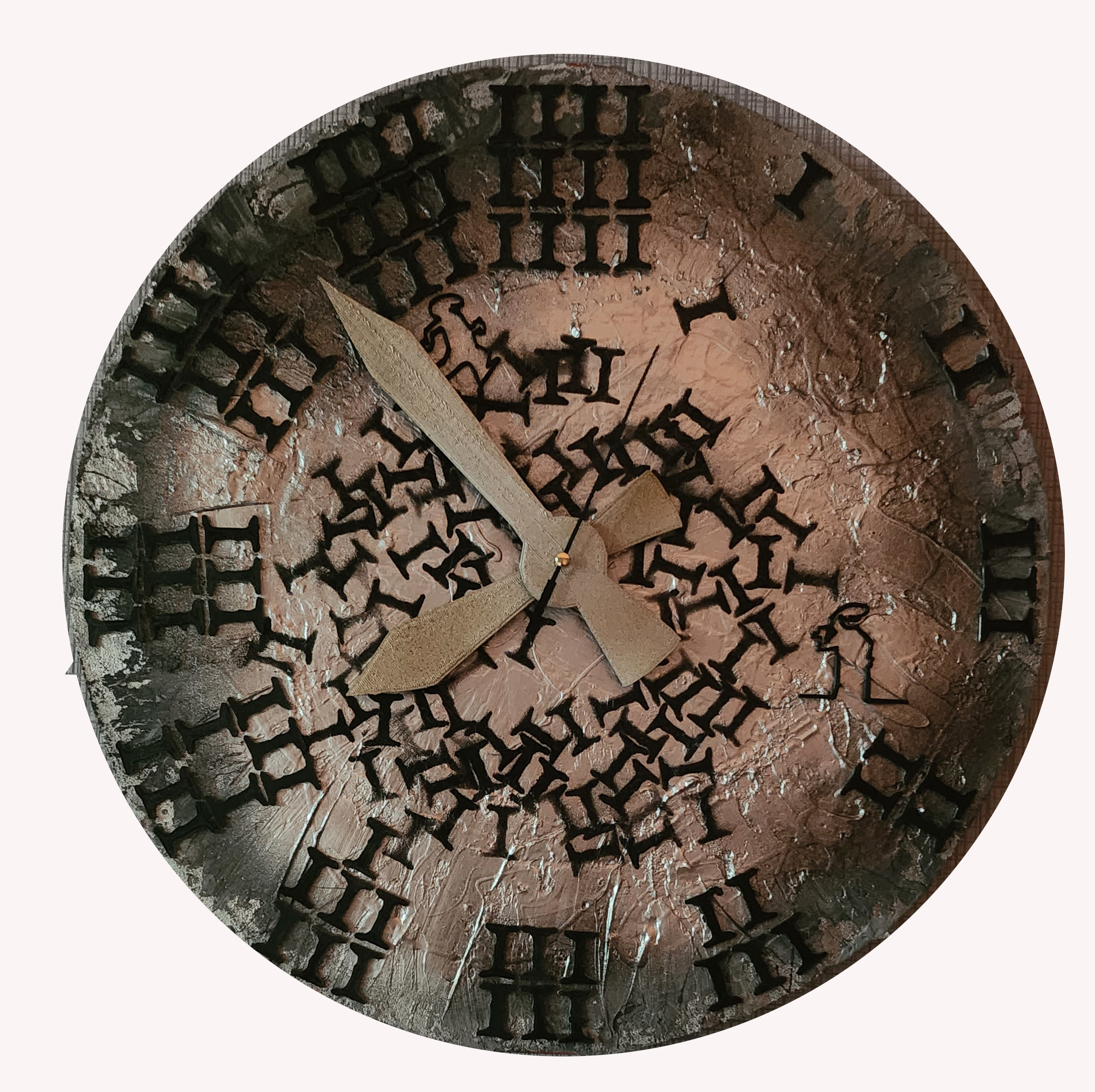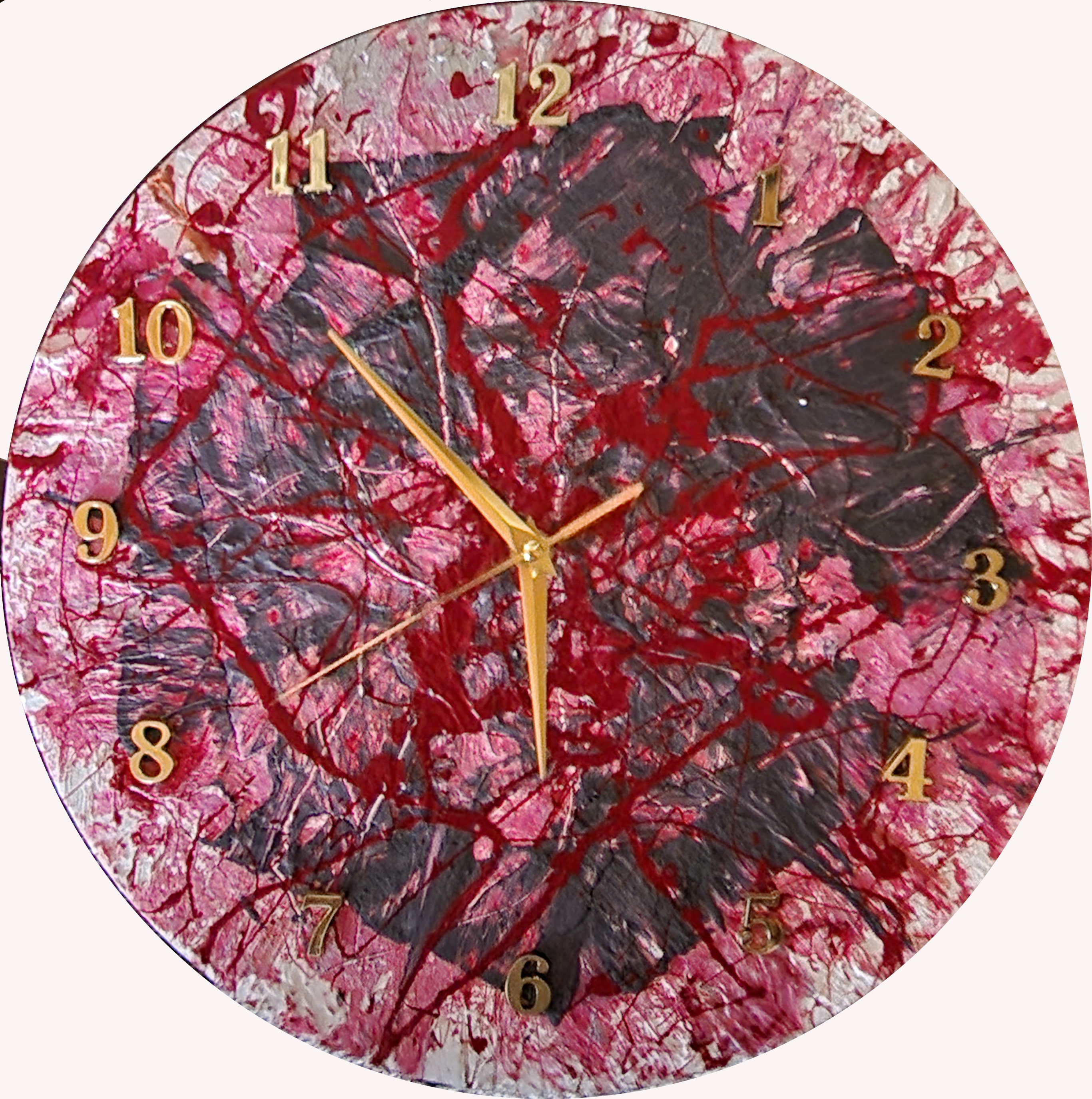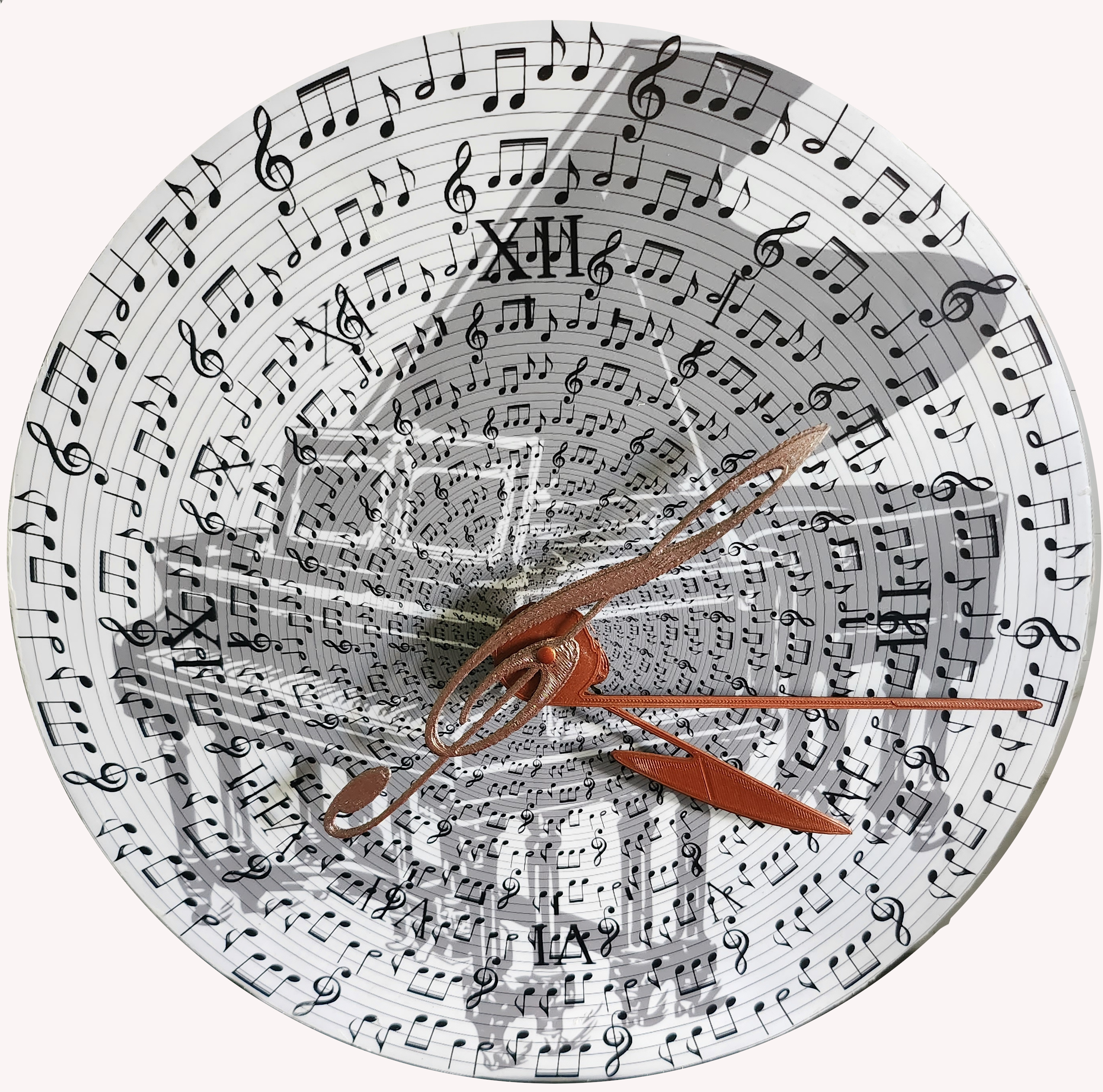 Das Werk ist auf Kunststoff gedruckt und deshalb relativ leicht. Die Uhr wurde als Geburtstagsgeschenk für ein Paar, dass zusammen 111 Jahre wurde.